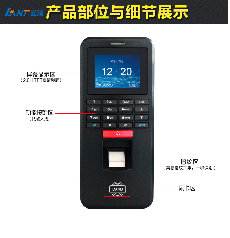 藍(lán)騰LANT 指紋考勤門禁機一體機 帶指紋+刷卡+密碼功能