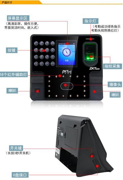 ZKTeco中控TX628彩屏指紋考勤機(jī)